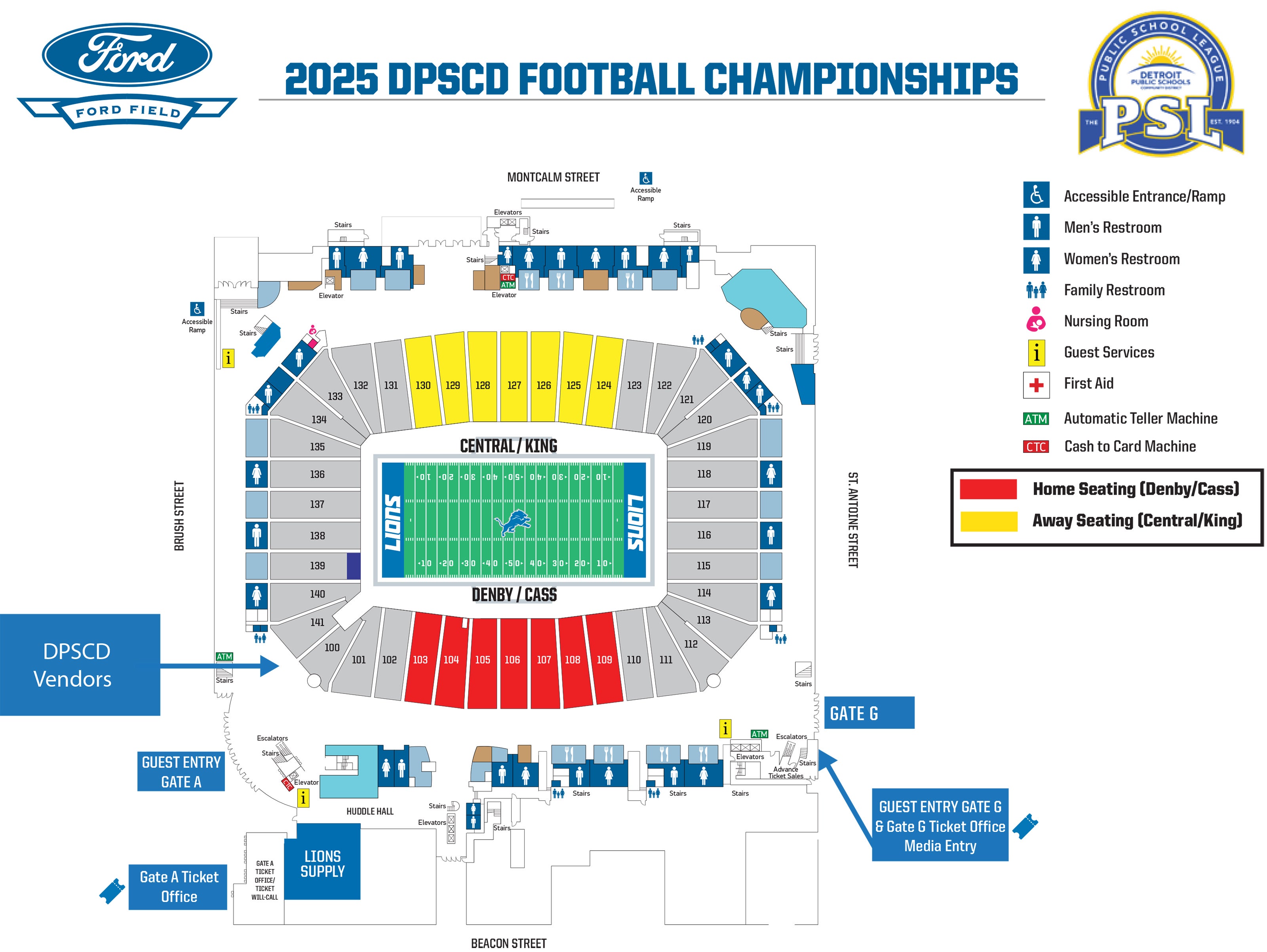 Ford Field is a cashless venue, no cash is accepted, including at concessions, retail locations, etc. Outside of purchasing tickets at the box office, for this event only, no cash will be accepted. Cash to card machines are located inside the stadium at Sections 100, 112, and 127.