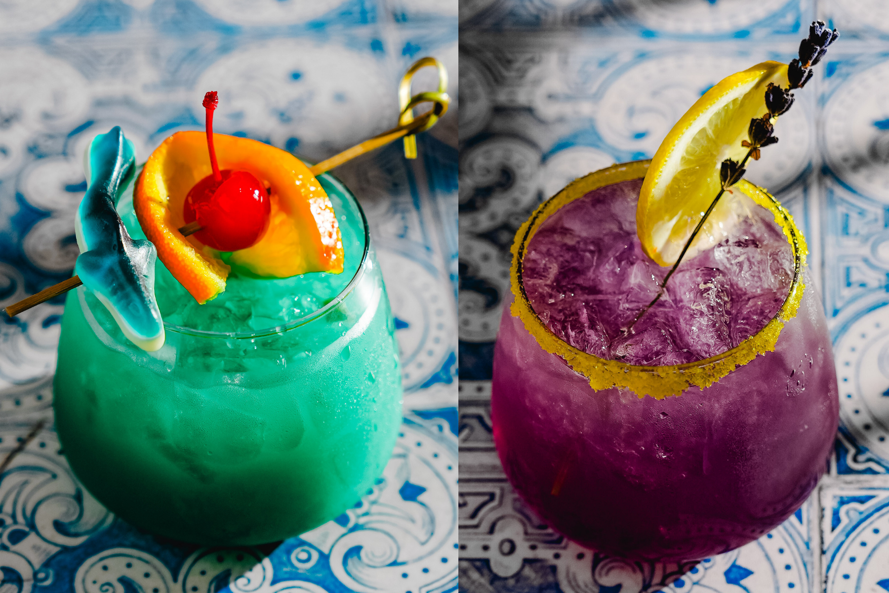 Honolulu Hurricane: Light & Dark Rum, Blue Curaçao, Orange & Pineapple Juice