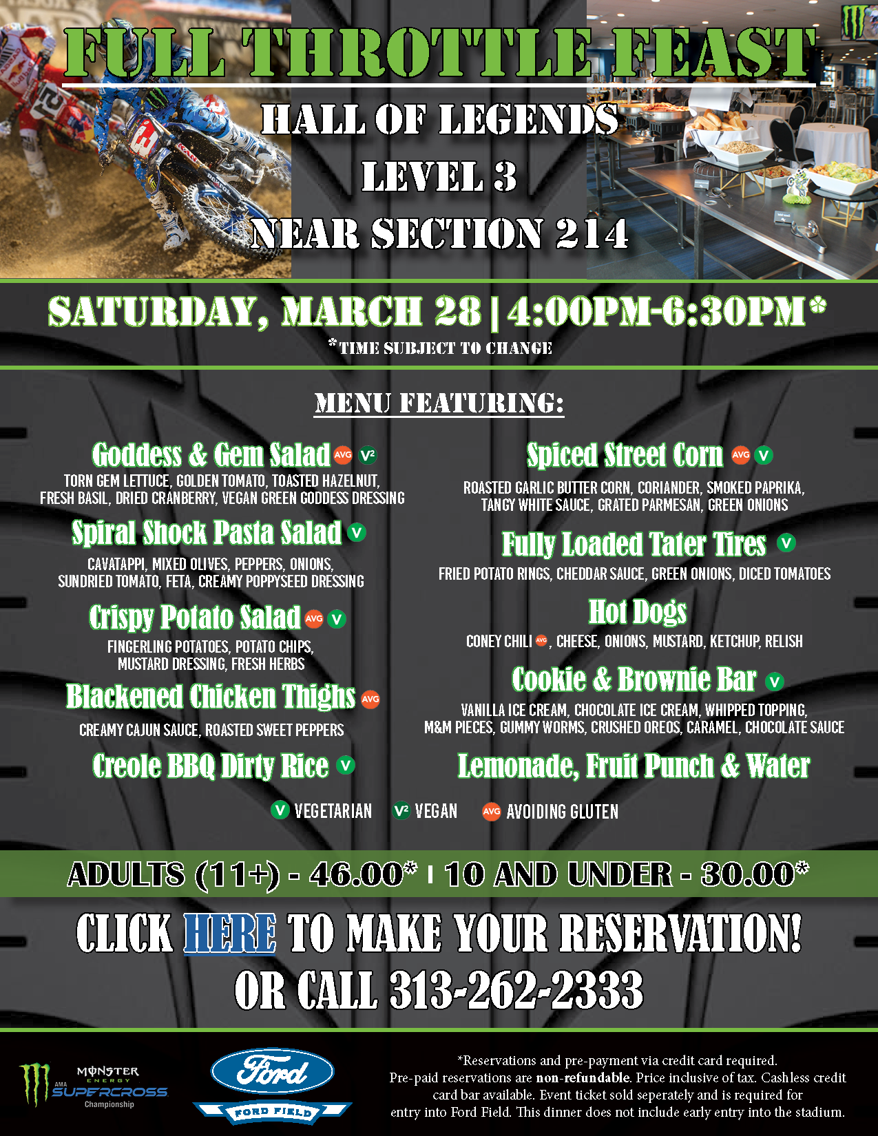 Join us for a Supercross Full Throttle Feast on March 28th from 4:00PM - 6:30PM*