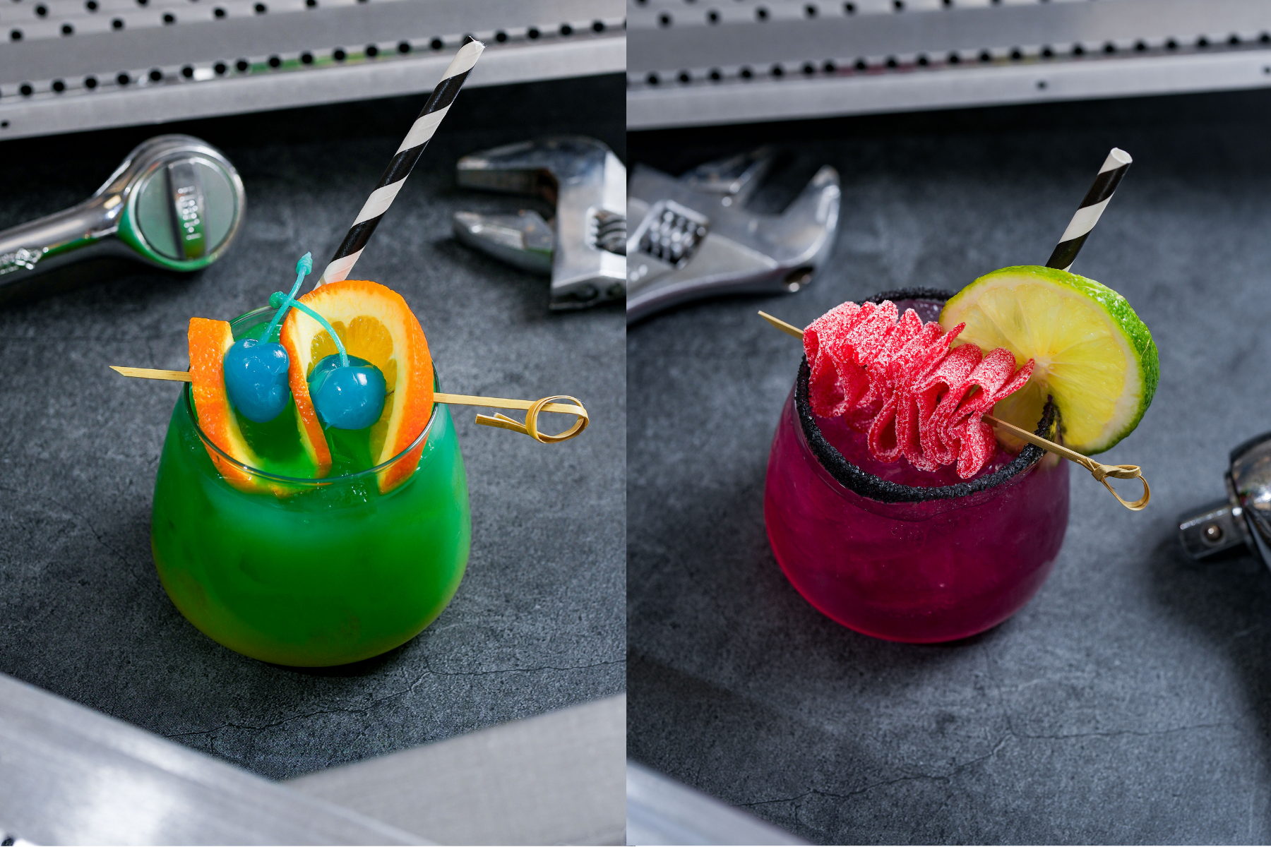 MX Braap - Vodka, Blue Curaçao, Orange Juice, Sprite, Orange Wheel, Blue Cherry
